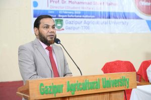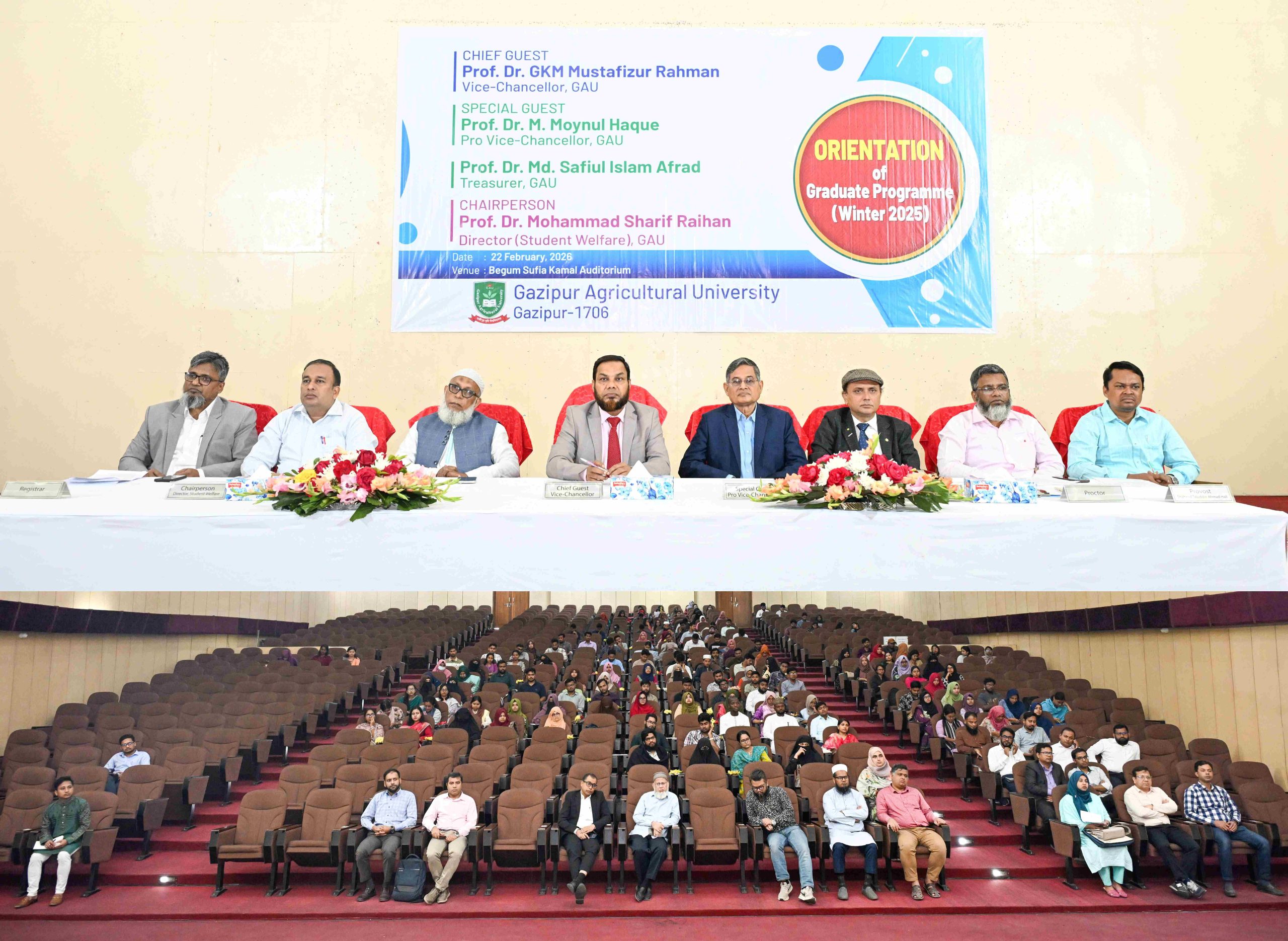 গাজীপুর কৃষি বিশ্ববিদ্যালয়ে (গাকৃবি) ‘উইন্টার ২০২৫’ টার্মের এমএস ও পিএইচডি প্রোগ্রামে নবভর্তিকৃত শিক্ষার্থীদের নিয়ে এক প্রাণবন্ত অরিয়েন্টেশন অনুষ্ঠিত হয়েছে। দেশের বিভিন্ন প্রথিতযশা বিশ্ববিদ্যালয় থেকে আগত মেধাবীদের পাশাপাশি নাইজেরিয়া থেকে আগত পিএইচডি শিক্ষার্থীসহ ২৪৯ জন এমএস এবং ৫ জন পিএইচডি শিক্ষার্থীর সমন্বয়ে মোট ২৫৪ জন শিক্ষার্থী নিয়ে এ অরিয়েন্টেশন অনুষ্ঠিত হয়। আজ ২২ ফেব্রুয়ারি (রবিবার) সকাল সাড়ে ৯টায় বিশ্ববিদ্যালয়ের বেগম সুফিয়া কামাল অডিটোরিয়ামে আয়োজিত অনুষ্ঠানের শুরুতে ফুল দিয়ে নবাগত শিক্ষার্থীদের বরণ করে নেওয়া হয়। অনুষ্ঠানে প্রধান অতিথি হিসেবে উপস্থিত ছিলেন গাকৃবির ভাইস-চ্যান্সেলর প্রফেসর ড. জিকেএম মোস্তাফিজুর রহমান। বিশেষ অতিথি হিসেবে উপস্থিত ছিলেন প্রো-ভিসি প্রফেসর ড. এম. ময়নুল হক এবং ট্রেজারার প্রফেসর ড. মোঃ সফিউল ইসলাম আফ্রাদ। অনুষ্ঠানে সভাপতিত্ব করেন বিশ্ববিদ্যালয়ের পরিচালক (ছাত্রকল্যাণ) প্রফেসর ড. মোহাম্মদ শরীফ রায়হান। এ সময় বিভিন্ন অনুষদের ডিন, পরিচালক, শিক্ষক, কর্মকর্তা ও কর্মচারীবৃন্দ উপস্থিত ছিলেন। স্বাগত বক্তব্যে বিশ্ববিদ্যালয়ের রেজিস্ট্রার মোঃ আবদুল্লাহ্ মৃধা নবীন শিক্ষার্থীদের সামনে গাকৃবির একাডেমিক ঐতিহ্য, গবেষণাভিত্তিক অগ্রযাত্রা এবং আন্তর্জাতিক পরিম-লে বিশ্ববিদ্যালয়ের সাফল্যের সংক্ষিপ্ত চিত্র তুলে ধরেন। এরপর এক প্রাণবন্ত পরিচিতি পর্বে শিক্ষার্থীরা নিজেদের স্বপ্ন, আগ্রহ ও গবেষণার লক্ষ্যের অবতারণা করেন। নবাগতদের পক্ষ থেকে এমএস শিক্ষার্থী উমানা হোসাইন দোলনা, পিএইচডি শিক্ষার্থী মোঃ রাশিদুল ইসলাম এবং নাইজেরিয়ার পিএইচডি শিক্ষার্থী বেদি ইব্রাহিম তাঁদের অনুভূতি ও প্রত্যাশা ব্যক্ত করেন। বিশ্ববিদ্যালয়ের প্রক্টর প্রফেসর ড. মোহাম্মদ সাইফুল আলম শিক্ষার্থীদের শৃঙ্খলা, দায়িত্ববোধ ও নৈতিক মূল্যবোধের গুরুত্ব তুলে ধরেন। আবাসিক হল ব্যবস্থাপনা ও নিয়মকানুন সম্পর্কে দিকনির্দেশনা দেন শহীদ তাজউদ্দিন আহমদ হলের প্রভোস্ট প্রফেসর ড. মোহাম্মদ নাজমুল হাসান। গ্র্যাজুয়েট স্টাডিজ অনুষদের ডিন প্রফেসর ড. মোঃ তোফাজ্জল ইসলাম উচ্চতর শিক্ষা ও গবেষণার কাঠামো, নীতিমালা এবং সম্ভাব্য গবেষণা-ক্ষেত্রসমূহ নিয়ে বিস্তারিত আলোচনা করেন। পরবর্তীতে অনুষ্ঠানের মূল অনুপ্রেরণা হয়ে ওঠে ভাইস-চ্যান্সেলরের বক্তব্য। আন্তর্জাতিক বিভিন্ন র্যাঙ্কিংয়ে দেশের পাবলিক ও প্রাইভেট বিশ্ববিদ্যালয়ের মধ্যে প্রথম স্থান অর্জনকারী গাকৃবিতে নবীন গবেষকদের স্বাগত জানিয়ে তিনি বলেন, “জীবনের লক্ষ্য সুপ্রতিষ্ঠিত করার ক্ষেত্রে এমএস ও পিএইচডি ডিগ্রির গুরুত্ব অপরিসীম। তোমাদের গবেষণালব্ধ ফলাফল বিশ্ববিদ