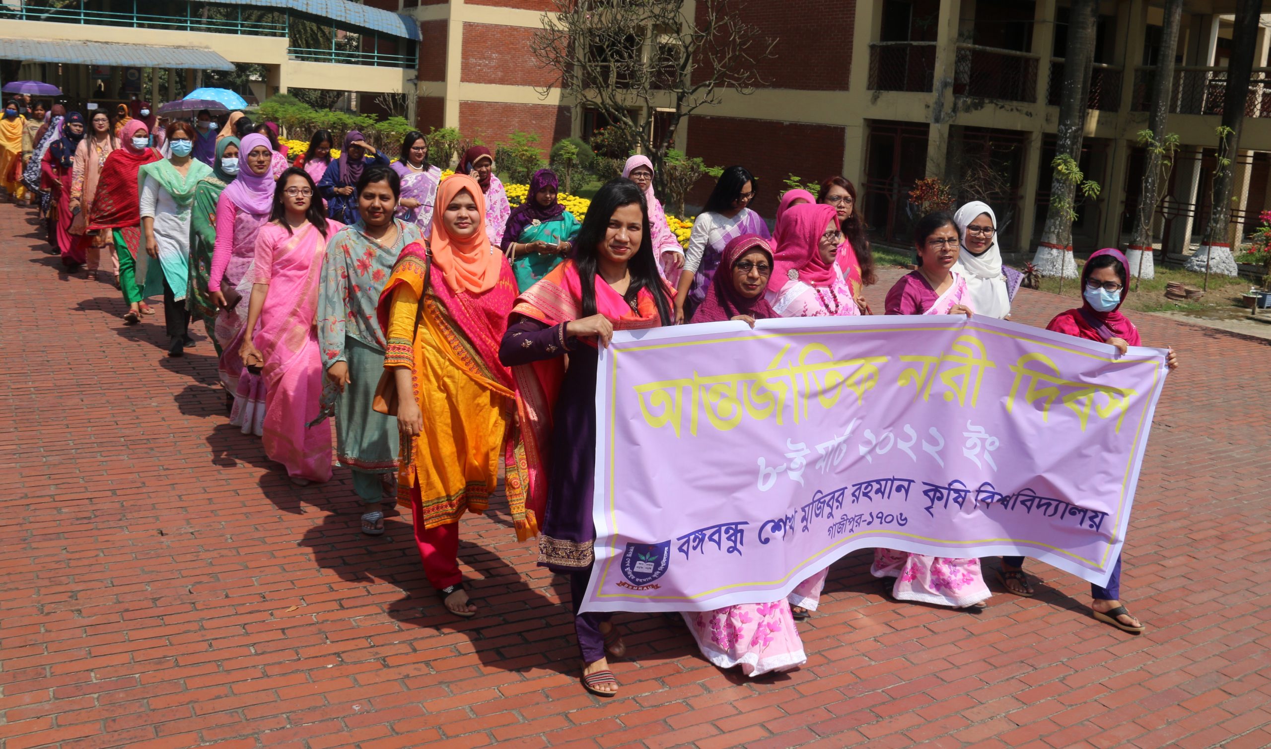 আজ ৮ মার্চ আন্তর্জাতিক নারী দিবস। নারীর অগ্রযাত্রায় এ দিনটি একটি মাইলফলক। এ দিবসে জাতিসংঘ ঘোষিত প্রতিপাদ্য বিষয় ‘নারীর সুস্বাস্থ্য ও জাগরণ’ এবং বাংলাদেশ সরকারের মহিলা ও শিশু বিষয়ক মন্ত্রণালয় কর্তৃক ঘোষিত এবারের প্রতিপাদ্য বিষয় “টেকসই আগামীর জন্য জেন্ডার সমতাই অগ্রগণ্য”। নারী অধিকার রক্ষায় বিশ্বব্যাপী সমতাভিত্তিক সমাজ-রাষ্ট্র গড়ার লক্ষ্যে প্রতিবছর ৮ মার্চ নারী দিবস উদযাপন করা হয়। বঙ্গবন্ধু শেখ মুজিবুর রহমান কৃষি বিশ্ববিদ্যালয়ে এ উপলক্ষ্যে নারী শিক্ষক, কর্মকর্তা, কর্মচারীর অংশগ্রহণে দিবসটি উদযাপন করা হয়। এ দিবসে একটি বর্নাঢ্য র্যালী অনুষ্ঠিত হয়।