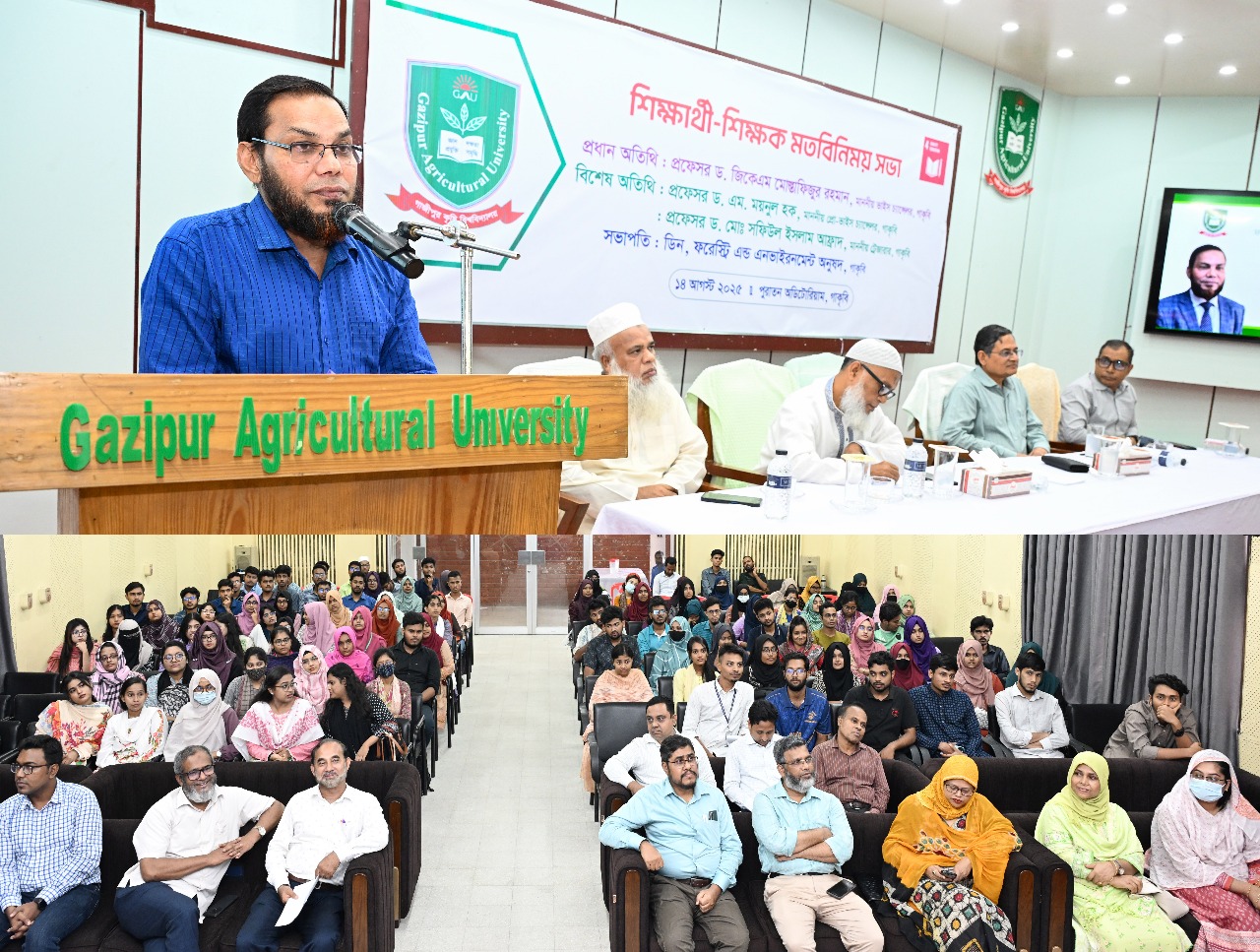গাজীপুর কৃষি বিশ্ববিদ্যালয় (গাকৃবি) এর ফরেস্ট্রি এন্ড এনভাইরনমেন্ট অনুষদের উদ্যোগে এক প্রাণবন্ত শিক্ষক-শিক্ষার্থী মতবিনিময় সভা অনুষ্ঠিত হয়েছে। গতকাল ১৪ আগস্ট, দুপুর ২টায় বিশ্ববিদ্যালয়ের পুরাতন অডিটোরিয়ামে এ মতবিনিময় সভা অনুষ্ঠিত হয়। শিক্ষার গুণগত মানোন্নয়ন, একাডেমিক পরিবেশ উন্নয়ন ও শিক্ষার্থীদের সার্বিক কল্যাণই এ সভার মূল উদ্দেশ্য। মহতী এ মতবিনিময় সভায় সভাপতিত্ব করেন বিশ্ববিদ্যালয়ের ফরেস্ট ইকোলজি বিভাগের প্রফেসর এবং ফরেস্ট্রি এন্ড এনভাইরনমেন্ট অনুষদের শিক্ষক ও বনবিদ ড. মোঃ আবিয়ার রহমান। অনুষ্ঠানে প্রধান অতিথি হিসেবে উপস্থিত ছিলেন গাজীপুর কৃষি বিশ্ববিদ্যালয়ের উপাচার্য প্রফেসর ড. জিকেএম মোস্তাফিজুর রহমান। প্রো-ভিসি প্রফেসর ড. এম. ময়নুল হক এবং ট্রেজারার প্রফেসর ড. মোঃ সফিউল ইসলাম আফ্রাদ শিক্ষার্থীদের উদ্দেশ্যে পরামর্শমূলক বক্ততা প্রদান করেন। এ সময় উপস্থিত ছিলেন বিশ্ববিদ্যালয়ের প্রক্টর প্রফেসর ড. মোহাম্মদ সাইফুল আলম এবং অনুষদের শিক্ষক-শিক্ষার্থীবৃন্দ। সভার শুরুতে স্বাগত বক্তব্য প্রদান করেন ফরেস্ট পলিসি এন্ড ম্যানেজমেন্ট বিভাগের প্রধান প্রফেসর ড. মোঃ মাঈন উদ্দিন মিঞা। স্বাগত বক্তব্যে অনুষদের উজ্জ¦ল ইতিহাস, ঐতিহ্য ও সফলতার নানা প্রসঙ্গ উঠে আসে। এরপর অনুষদীয় শিক্ষার্থীরা এই মতবিনিময় সভাকে তাদের চিন্তা, চাহিদা ও ভবিষ্যৎ প্রত্যাশা প্রকাশের একটি উন্মুক্ত প্ল্যাটফর্ম হিসেবে গ্রহণ করে মতামত ব্যক্ত করেন। বক্তৃতায় তারা শিক্ষা-কার্যক্রমের মানোন্নয়ন, গবেষণায় সুযোগ বৃদ্ধি, ল্যাব সরঞ্জামের উন্নয়ন, ইন্ডাস্ট্রিয়াল লিংকেজ এবং ক্যারিয়ার কাউন্সেলিংয়ের মতো গুরুত্বপূর্ণ বিষয়গুলো তুলে ধরেন। পরে আমন্ত্রিত অতিথিবৃন্দ বক্তব্য প্রদান করেন। সভায় প্রধান অতিথি হিসেবে বিশ্ববিদ্যালয়ে উপাচার্য তাঁর মূল্যবান বক্তব্যে বলেন, “একটি বিশ্ববিদ্যালয় শুধু জ্ঞান অর্জনের জায়গা নয়, এটি একটি চেতনার কেন্দ্র। আমাদের শিক্ষার্থীরা কেবল ডিগ্রিধারী হয়ে নয়, প্রকৃত অর্থে জ্ঞানবান ও সচেতন নাগরিক হিসেবে গড়ে উঠবে এটাই আমাদের লক্ষ্য। তিনি আরও বলেন, “বিশ্ববিদ্যালয়ের প্রতিটি অনুষদ, প্রতিটি বিভাগ আমাদের সমৃদ্ধির অংশীদার। ফরেস্ট্রি এন্ড এনভাইরনমেন্ট অনুষদের শিক্ষার্থীদের কাছ থেকে পরিবেশবান্ধব ও টেকসই উন্নয়নের পথনির্দেশ আশা করছি।” এ সময় নিজেদের সাধ্যের মধ্যে থেকে সর্বোচ্চ সুবিধা নিশ্চিত করার প্রত্যাশাও ব্যক্ত করেন উপাচার্য। সভাপতি তাঁর সমাপনী বক্তব্যে কতিপয় সুপারিশ ও সকলের প্রতি কৃতজ্ঞতা জানিয়ে সভার পরিসমাপ্তি ঘোষণা করেন। অনুষ্ঠানটি শিক্ষক ও শিক্ষার্থীদের আন্তরিক অংশগ্রহণে ছিল অত্যন্ত প্রাণবন্ত ও সার্
