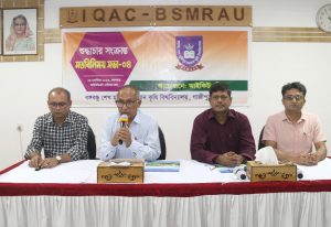 গত ২৫ ও অদ্য ২৬ সেপ্টেম্বর, সোমবার ও মঙ্গলবার সকাল ১১:৩০ টায় এবং দুপুর ২:৩০টায় বঙ্গবন্ধু শেখ মুজিবুর রহমান কৃষি বিশ্ববিদ্যালয়ের প্রাতিষ্ঠানিক মান নিশ্চিতকরণ সেল (আইকিউএসি) কর্তৃক আয়োজিত শুদ্ধাচার সংক্রান্ত চারটি মতবিনিময় সভা আইকিউএসি সেমিনার কক্ষে অনুষ্ঠিত হয়। জাতীয় শুদ্ধাচার কৌশল কর্মপরিকল্পনা (২০২৩-২৪) এর অংশ হিসেবে অনুষ্ঠিত সভায় পরিচালক (আইকিউএসি) প্রফেসর ড. মোতাহার হোসেন সভাপতিত্ব করেন। সভায় বিশ্ববিদ্যালয়ের ভাইস-চ্যান্সেলর প্রফেসর ড. মোঃ গিয়াসউদ্দীন মিয়া প্রধান অতিথি হিসেবে উপস্থিত থেকে সভার উদ্বোধন করেন। বিশেষ অতিথি হিসেবে উপস্থিত ছিলেন ট্রেজারার প্রফেসর তোফায়েল আহমেদ। সভার প্রধান অতিথি তাঁর বক্তব্যে বলেন, বার্ষিক কর্মসম্পাদন চুক্তি (এপিএ) বাস্তবায়নে বশেমুরকৃবি শ্রেষ্ঠত্ব অর্জন করায় সংশ্লিষ্ট সকলকে ধন্যবাদ ও অভিনন্দন জানান। বিশ্ববিদ্যালয়ের এ জয়যাত্রা অব্যাহত রাখার চ্যালেঞ্জ গ্রহণ করে আগামী দিনগুলোতে আরো দায়িত্বশীল ভ‚মিকা পালনের জন্য সকলের প্রতি আহবান জানান। উদ্বোধনী সভা সঞ্চালনা করেন আইকিউএসি’র অতিরিক্ত পরিচালক প্রফেসর ড. আসিফ রেজা অনীক এবং জাতীয় শুদ্ধাচার কর্মপরিকল্পনা বিস্তারিত উপস্থাপন করেন এপিএ বাস্তবায়ন টিমের ফোকাল পয়েন্ট ও উপ-রেজিস্ট্রার মোঃ আবু আল বাশার। মতবিনিময় সভাসমূহে বিশ্ববিদ্যালয়ের সকল বিভাগ, শাখা ও দপ্তরসমূহের কর্মকর্তাগণ অংশগ্রহণ করেন।