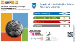 বিশ্বখ্যাত কিউএস ওয়ার্ল্ড ইউনিভার্সিটি সাসটেইনাবিলিটি র্যাংকিং ২০২৪-এ বিশ্বের শীর্ষ বিশ্ববিদ্যালয়সমূহের তালিকায় বশেমুরকৃবি