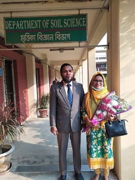 Mariam Khanam was born on 28th December, 1992 in the village of Chalk Jamalpur under the Kaligonj upazila of Gazipur district. She passed the secondary School Certificate (SSC) examination in 2007 securing GPA 4.69 out of 5.00 from Begum Rabeya Ahmed Girl’s High School, Gazipur and the Higher secondary Certificate (HSC) examination in 2009 from Udayan Uchcha Madhyamik Bidyalaya, Dhaka securing GPA 5.00 out of 5.00. She obtained Bachelor of Science in Agriculture degree from Bangabandhu Sheikh Mujibur Rahman Agricultural University (BSMRAU), Gazipur in 2014 securing CGPA 4.00 (1st position among 87 students). She also completed her Master of Science in Soil Science degree in 2017 from BSMRAU securing CGPA 4.00 (1st position) out of 4.00.